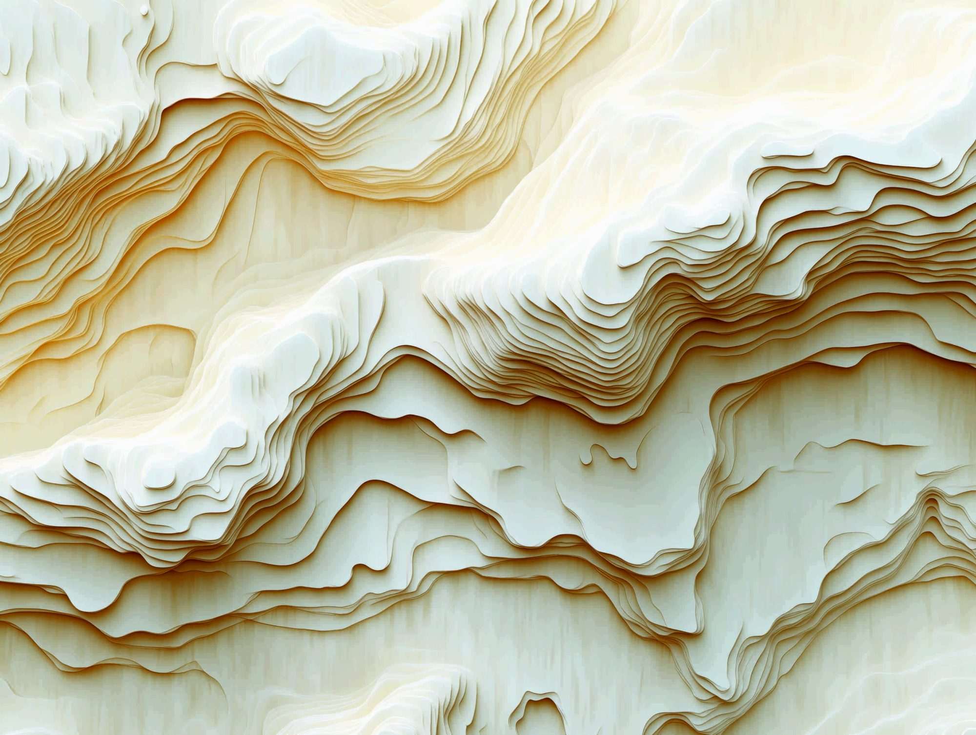 Dit fotobehang abstract goud witte marmerstructuur toont een gelaagd oppervlak dat lijkt op gesneden natuursteen. De compositie bestaat uit meerdere lagen die zich horizontaal door het beeld bewegen.