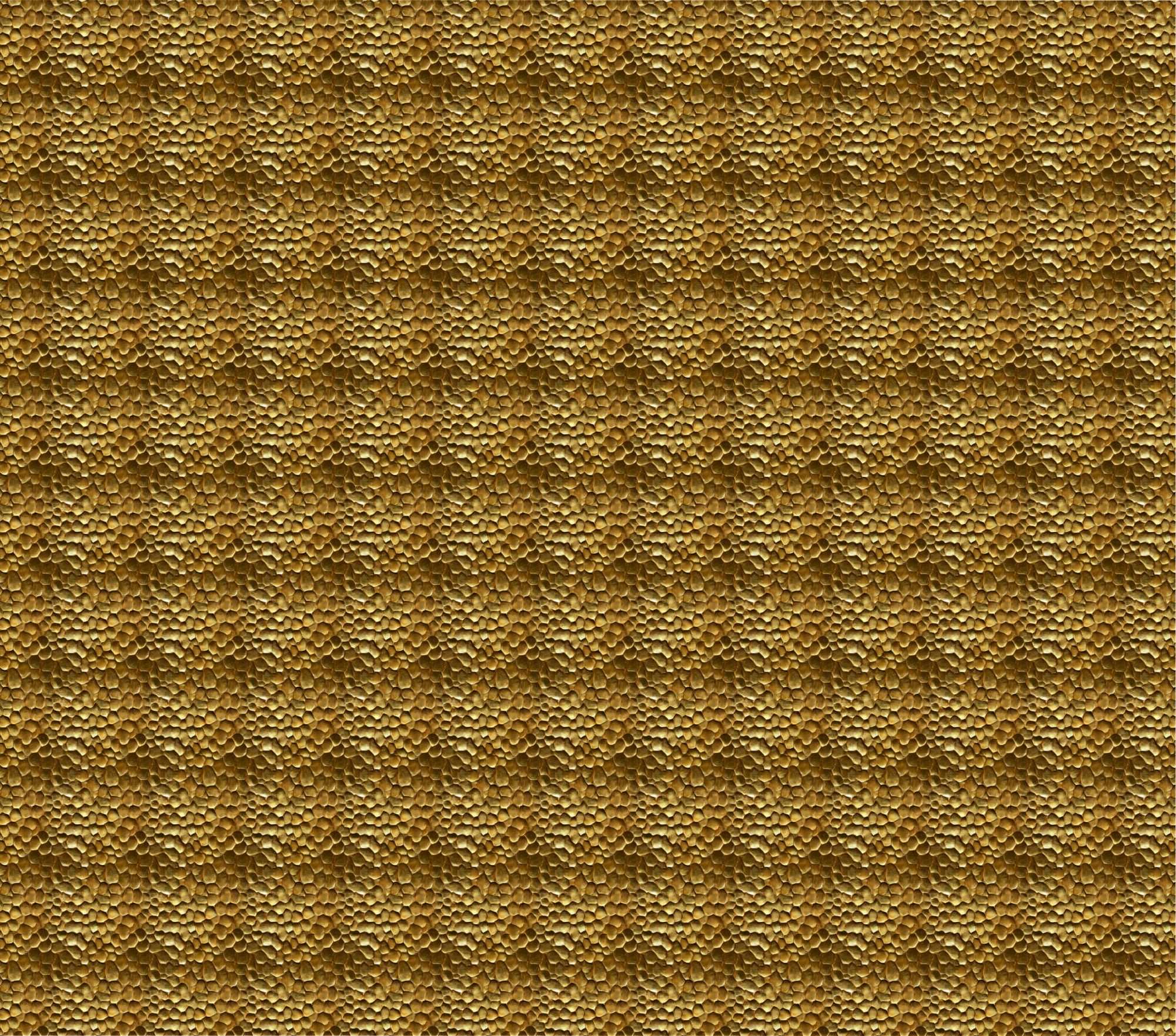 Het kleurgebruik bestaat uit verschillende goudtinten die variëren van zacht champagnegoud tot diepere warme accenten. Deze kleurvariaties zorgen voor een levendig oppervlak waarin elke cel net iets anders wordt belicht. Het licht speelt langs de randen van de zeshoekige vormen en creëert zachte schaduwpartijen.