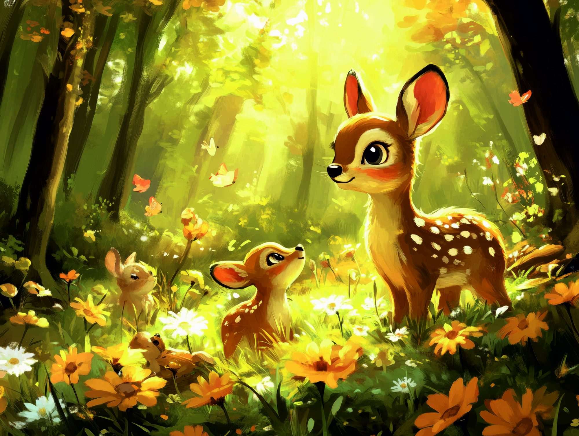 Hertjes bos bloemen warm licht kinderkamer