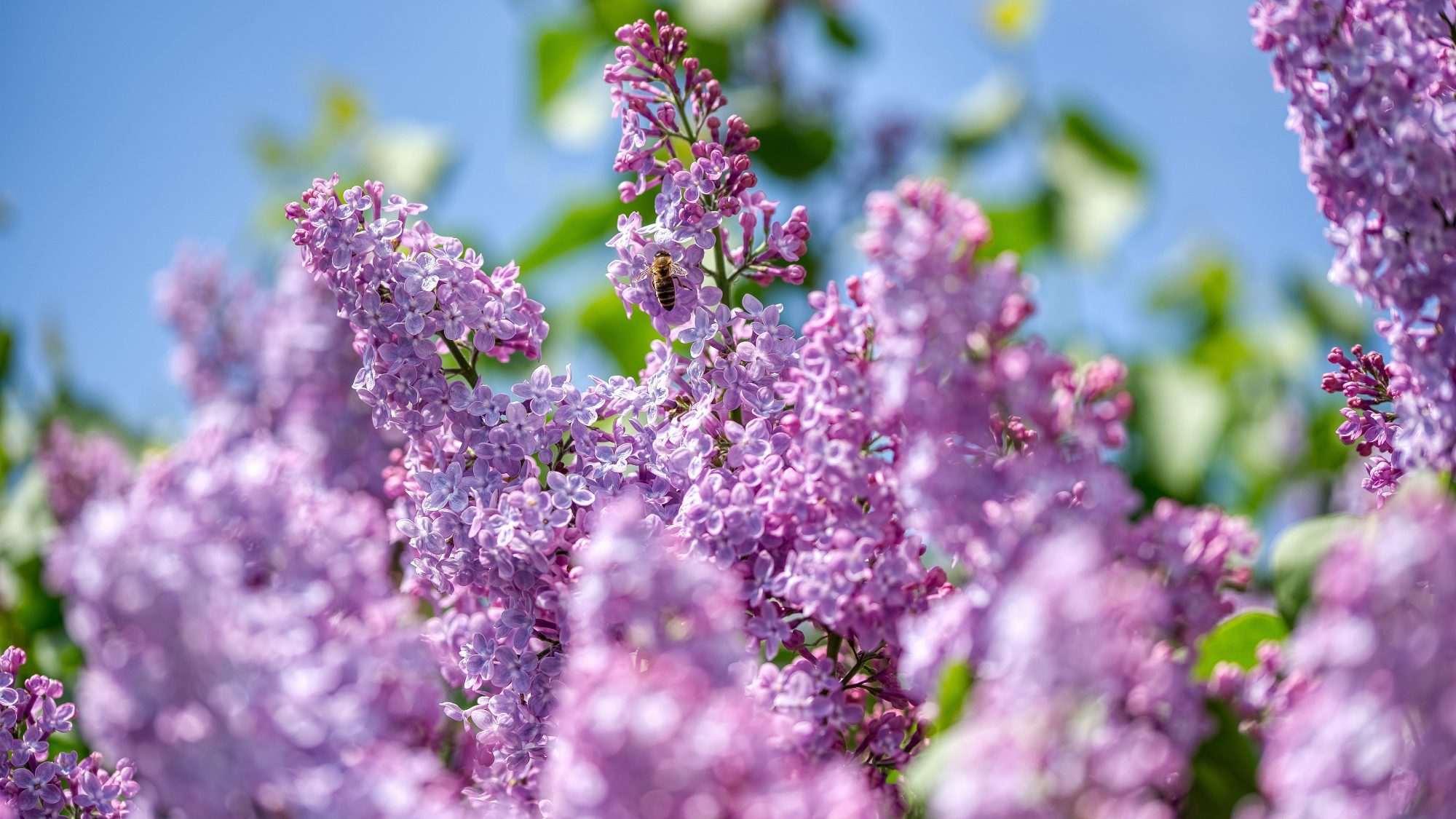 Het zonlicht valt door de bloemen en creëert kleine lichtaccenten op de bloemblaadjes. Hierdoor ontstaat een natuurlijke glans.
