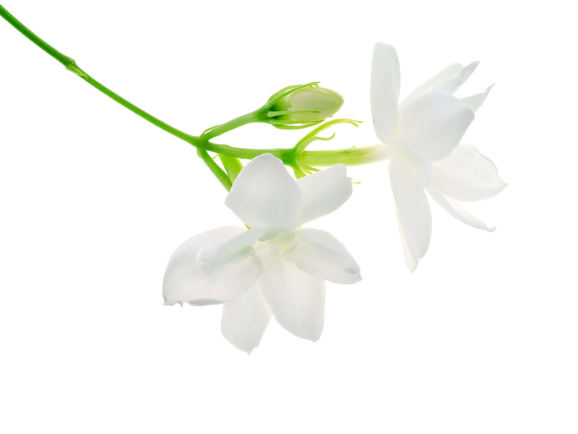 Dit fotobehang minimalistische jasmijntak toont een elegante jasmijntak met enkele open bloemen tegen een rustige witte achtergrond. De compositie is bewust eenvoudig gehouden waardoor de bloemvormen duidelijk naar voren komen. De dunne groene steel loopt diagonaal door het beeld en geeft de afbeelding een lichte beweging.