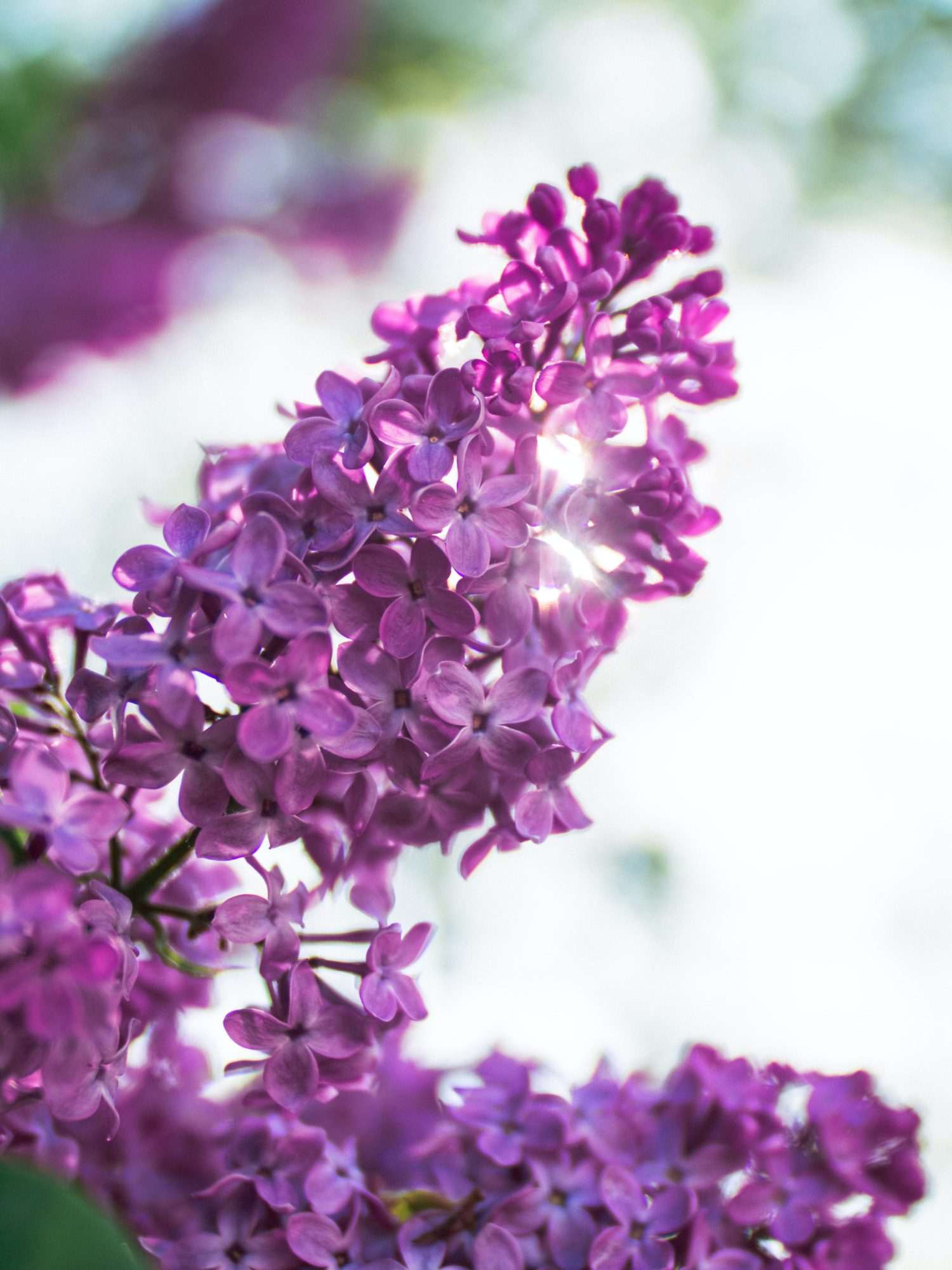 Het licht valt van boven op de bloemtros en creëert kleine highlights op de randen van de bloemblaadjes. De schaduwen tussen de bloemen zorgen voor extra diepte en maken de structuur duidelijk zichtbaar.