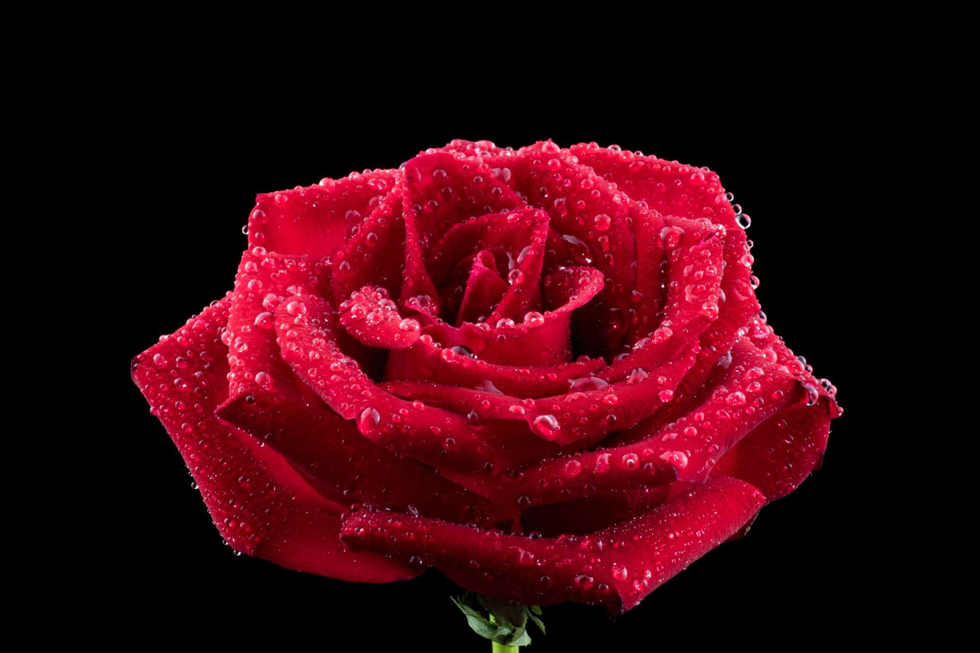 Rode Roos met Dauwdruppels op Zwarte Achtergrond