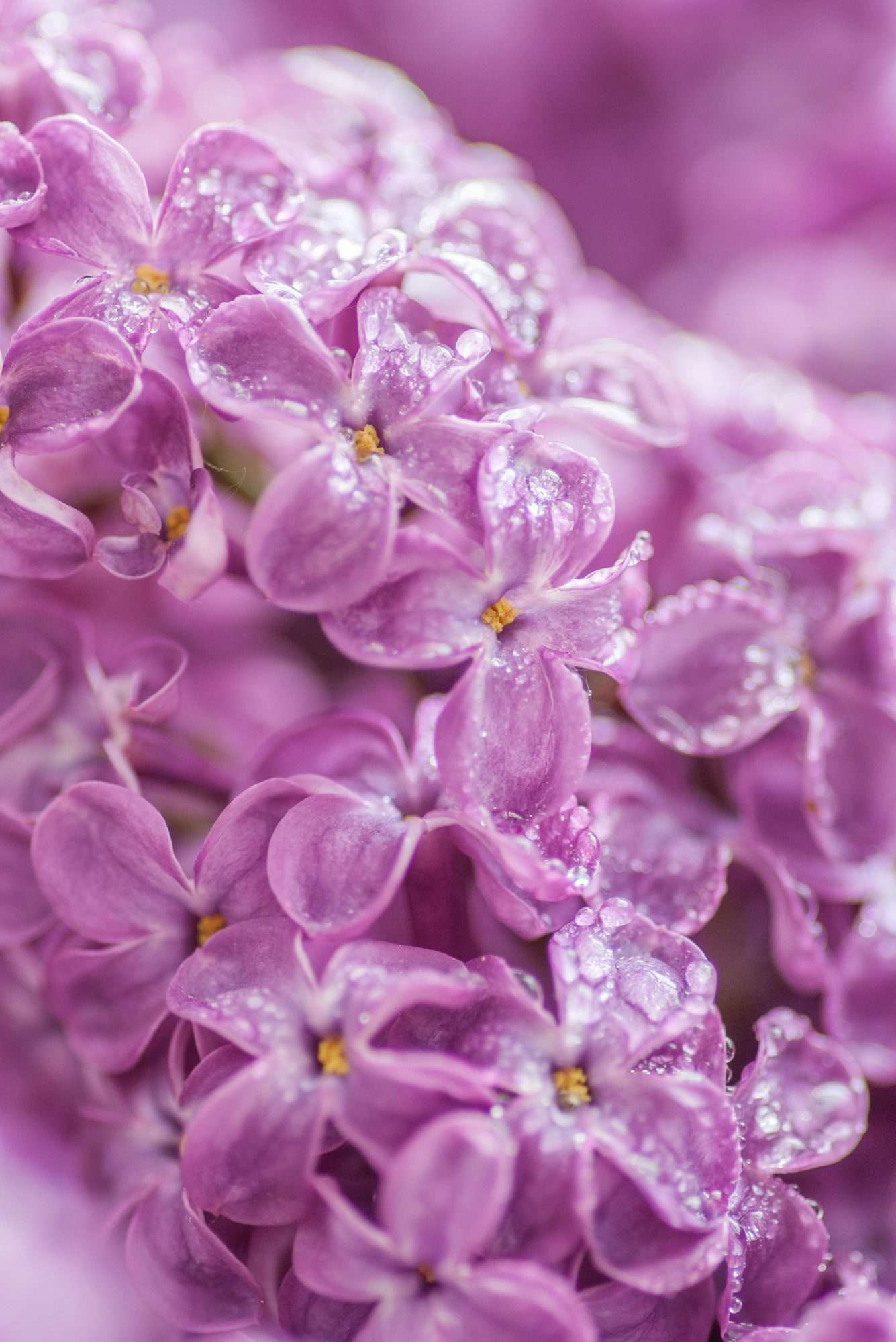 Door de korte afstand van de camera zijn de details van de bloemblaadjes duidelijk zichtbaar. De achtergrond vervaagt waardoor de bloemen naar voren komen.