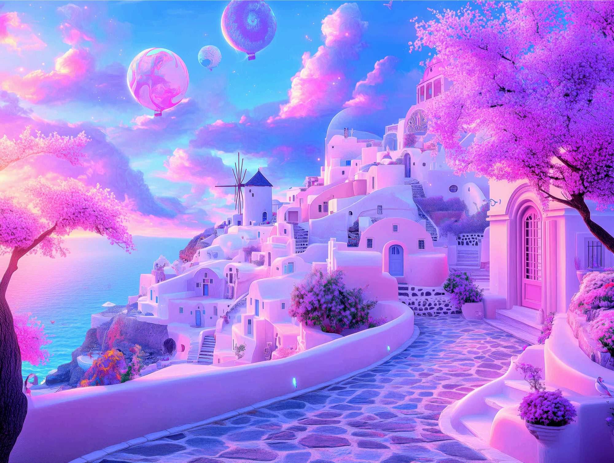 De kleuren van het ontwerp bestaan uit lichte pasteltonen zoals roze, lila en zacht blauw. Deze kleuren zorgen voor een rustige en vriendelijke uitstraling. De gebouwen hebben subtiele kleurverschillen waardoor het dorp levendig oogt zonder druk te worden.