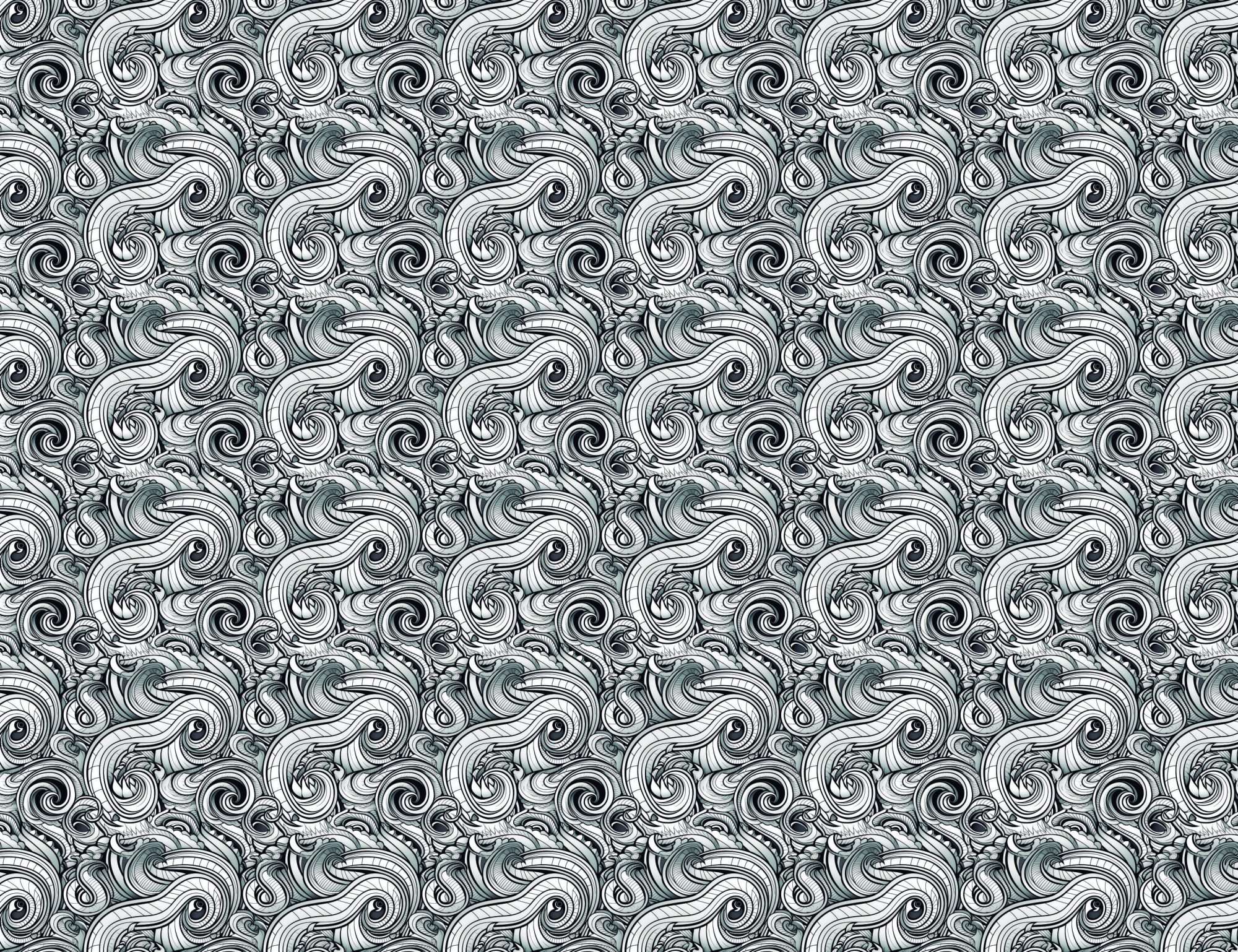 Dit fotobehang zwart wit spiralen patroon toont een dynamische compositie van vloeiende lijnen die in elkaar draaien. De vormen lijken zich als golven door het beeld te bewegen en creëren een continu ritme van rondingen en bochten.